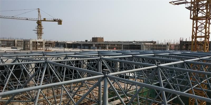 網格尺寸要與屋面材料相適應,網架上直接鋪設鋼筋混凝土板時,網格尺寸不宜過大,一般不超過3m,否則安裝困難