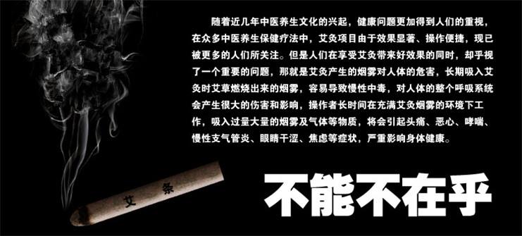 近年來百姓對中醫養生文化越漸熱崇,艾灸療法也是其中必不可少的一種養生方法,[艾灸煙霧凈化器]主要還是其操作便捷,效果明顯。但人民在享受艾灸帶來好的效果的同事,卻忽略了一個重要的問題,那就是艾灸所產生的煙霧對人體的煩擾。那么,艾灸煙霧對人主要由那些危害呢?![]() 艾灸煙霧中所含化學物質。 艾灸主要是通過燃燒的艾條和針灸相結合的方法達到對身體的理療作用。艾條燃耗后產生的煙霧中有大量的脂肪烴,芳香烴等,長期吸入容易導致慢性中毒,對于艾灸行業工作人員的身體健康存在著極大的危害。 長期吸入艾灸煙霧的癥狀表現。 長期吸入艾灸艾條釋放的煙霧會偶爾或者經常出現頭暈、眼干、干咳、喉嚨痛、視力模糊、皮膚干燥等問題,一旦出現上述問題,[艾灸煙霧凈化機]請及時就醫,或者對艾灸煙霧進行必要的處理。 對于商家來說艾灸煙霧不能有效處理,也會導致客戶情緒不滿,如此長期下去業務將會逐漸減少,隨之而來的營業額和利潤也會逐漸減少,對商家來說是岌岌可危的。 對于這類煙霧的處理申瑞艾灸煙霧凈化器能幫助您實現! 改設備專門為艾灸條燃燒等所產生廢氣的凈化而設計的。能實現室內空氣循環凈化,煙塵凈化機采用進口高風壓、低噪音風機,能有效的吸取煙塵廢氣。設備的過濾系統由預過濾層、主過濾層和氣體過濾層三部分組成,預過濾層能夠吸附廢氣中比較大的粒子來避免主過濾層過早的被堵塞;主過濾層由HEPA高效過濾芯組成,HEPA高效過濾芯對0.3微米的微粒的過濾效率為99.99%,氣體過濾層由化學濾芯組成,能有效的去除煙塵廢氣中的有害氣體。