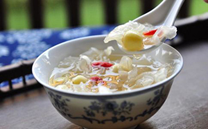 食物簡介:銀耳有“菌中之冠”的美稱。既是名貴的營養滋補佳品,又是扶正強壯的補藥。 清肺原理:同為白色食物,銀耳性更溫潤,比雪梨更適合體寒或腸胃不好的人,同時又有益氣清腸的作用。