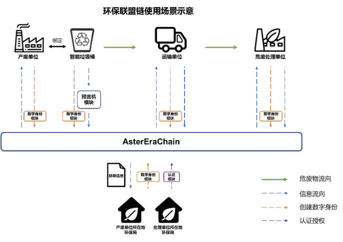 某公司與當地政府的危廢處理企業、環保部門合作,利用物聯網和區塊鏈技術,打造了一個工業級危險廢物轉移管理大數據平臺。使用此大數據平臺的企業會在產廢工廠放置智能危廢垃圾桶,垃圾桶會將收集到的危險廢物的重量等信息通過物聯網協議上傳到云端管理平臺,保證數據的即時準確,當垃圾桶中的廢物達到一定重量閾值后,平臺會調度相關的運輸公司的車輛去收集廢物,運輸到相關的處置單位。 在危廢轉移過程中,當智能垃圾桶中的危廢被傾倒出去時,垃圾桶會自動在區塊鏈上創建一個“區塊鏈聯單”,而產廢企業、運輸公司、處置單位接下來的每一次操作也都會通過APP上傳信息到區塊鏈聯單中,區塊鏈聯單自創建到完成的整個生命周期也都在相關政府環保部門的監管之下,并且通過密碼學技術以及區塊鏈權限管理功能,有效的保護各企業的數據隱私性。同時,大數據管理平臺會對危廢轉移數據、聯單數據進行管理、分析和可視化,提供一個完整的從線下收集數據到云端管理數據的信息閉環。