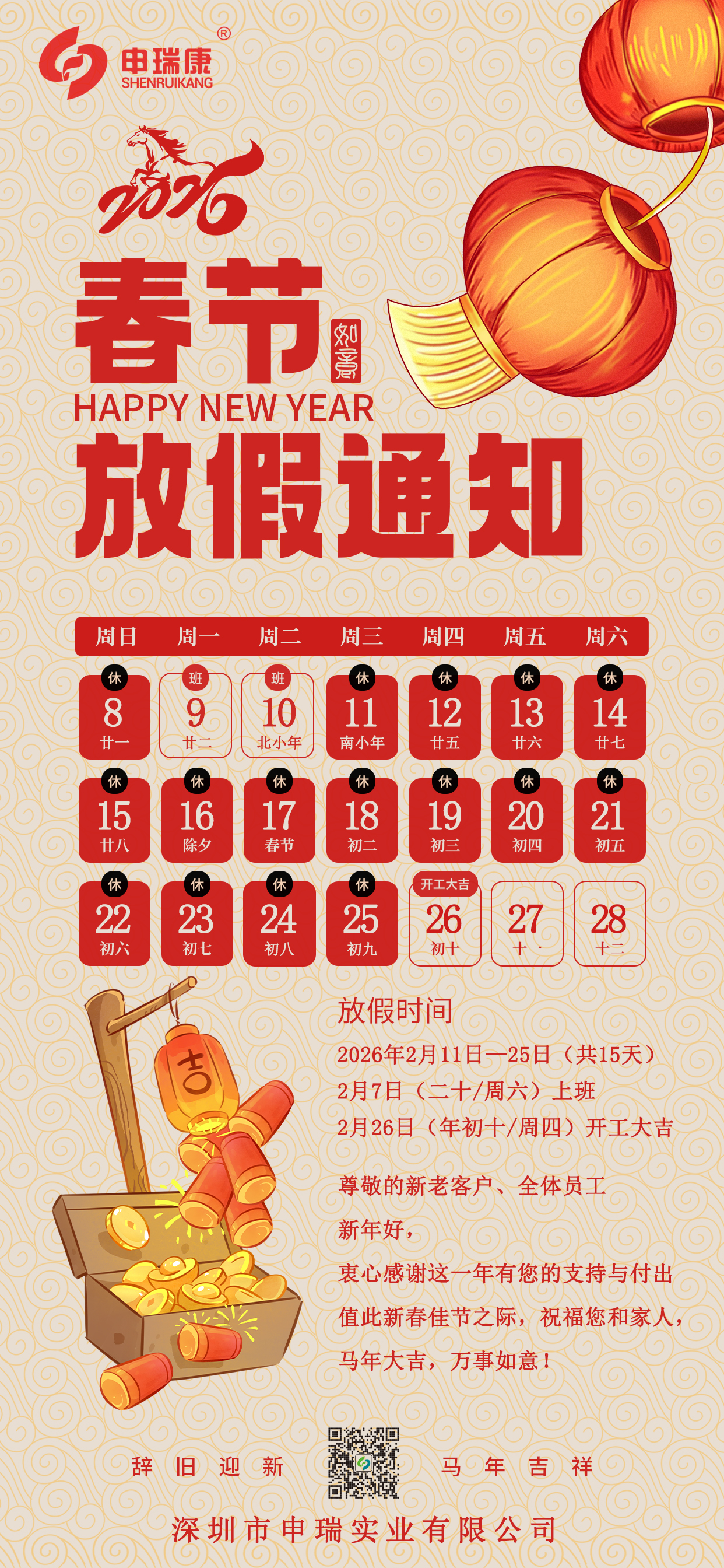 申瑞|2026年春節放假通知